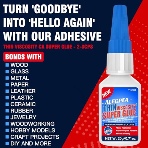- Ultra-Thin Viscosity for Precision:Boasting a water-like consistency (2-3 CPS), this glue penetrates tight spaces up to 0.002 inches and stabilizes micro-cracks effortlessly. Includes precision micro-tips for controlled, mess-free application in intricate areas.