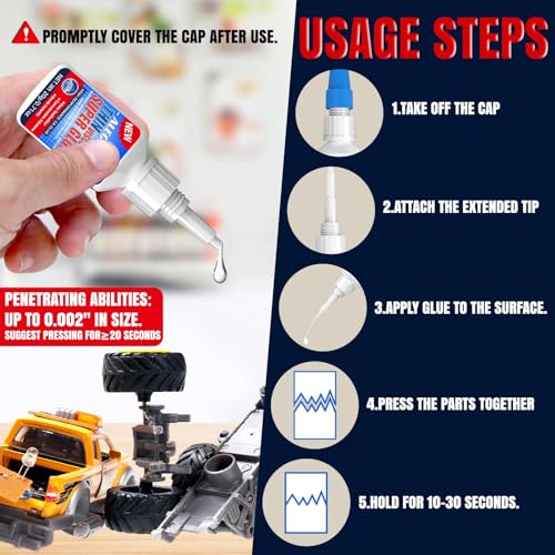 - Fast and Reliable Bonding:Delivers instant bonding with a drying time of 3-5 seconds, ensuring efficient work on any project. Fully cures within 24 hours for long-lasting strength and durability