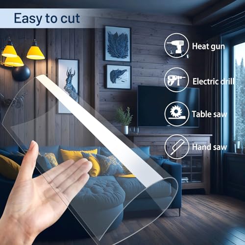 - 【𝐄𝐚𝐬𝐲 𝐭𝐨 𝐂𝐮𝐭】The clear plastic sheets can be easily cut into various shapes by table saw, jigsaw, drill, router, bandsaw, and other hand tools according to your actual needs.