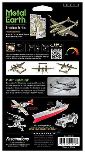 - PREMIUM SERIES P-38 LIGHTNING – 2 Sheet Model with a challenging difficulty level. Once assembled, dimensions are 5.67 L x 7.95 W x 3.15 H inches. 1:79 Scale.