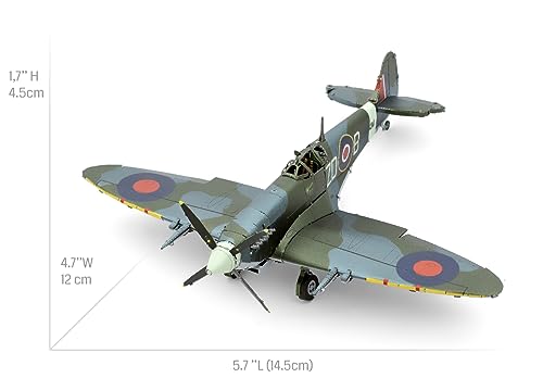 - SUPERMARINE SPITFIRE – 2 Sheet Model with a moderate difficulty level. Assembled Size: 5.70 L x 4.70 W x 1.70 H inches. 1:65 Scale. 54 Pieces.