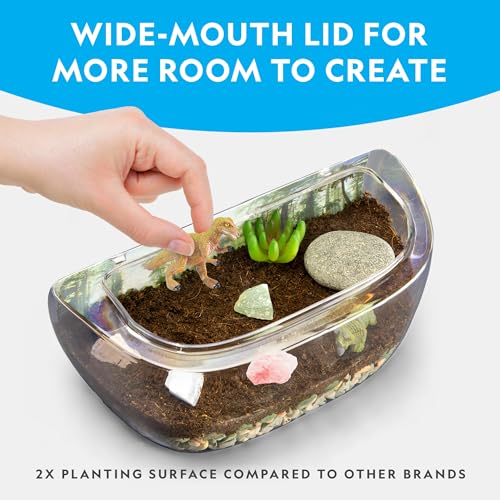 • WIDE MOUTH & PANORAMIC VIEW – The unique, wide-mouth design of this terrarium makes it easy for smaller hands to set up and work with the provided materials. And the panoramic view lets kids explore what's inside as their habitat evolves.