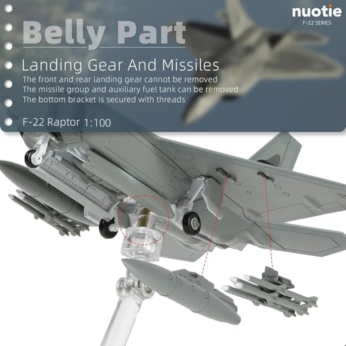 - 【Practical Packaging】-The 1/100 pre-built F-22 Raptor jet fighter model comes with a detachable metal stand, allowing you to display the airplane model in different poses. The F-22 Raptor aircraft model also comes with an exquisite packaging box to protect the plane model from damage during transportation. The assembly time of the F-22 Raptor jet fighter model is about 2 minutes, and the package contains the fuselage and display stand to ensure that you have everything you need for display.