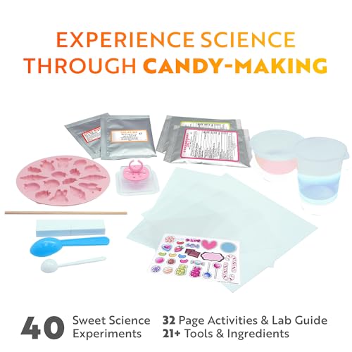- LOADED WITH VALUE – Filled with over 40 experiments, a 32 page activities and lab guide, and over 21 tools & ingredients, our Edible Candy/Gummy making kit offers only the best science projects for kids ages 8-12. The ideal "my first science kit" with a real science lab feel. STEM for kids has never been this tasty! (Some additional common household supplies may be necessary for some experiments)